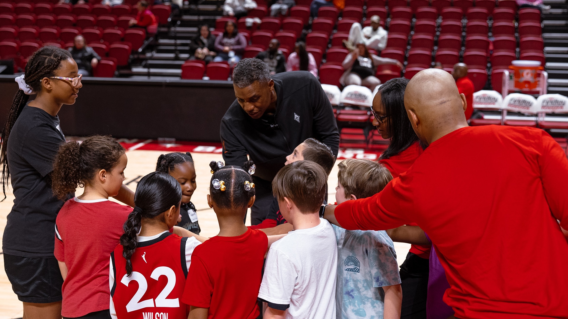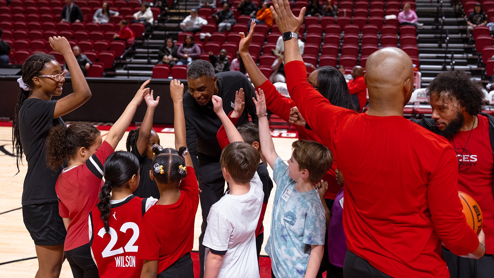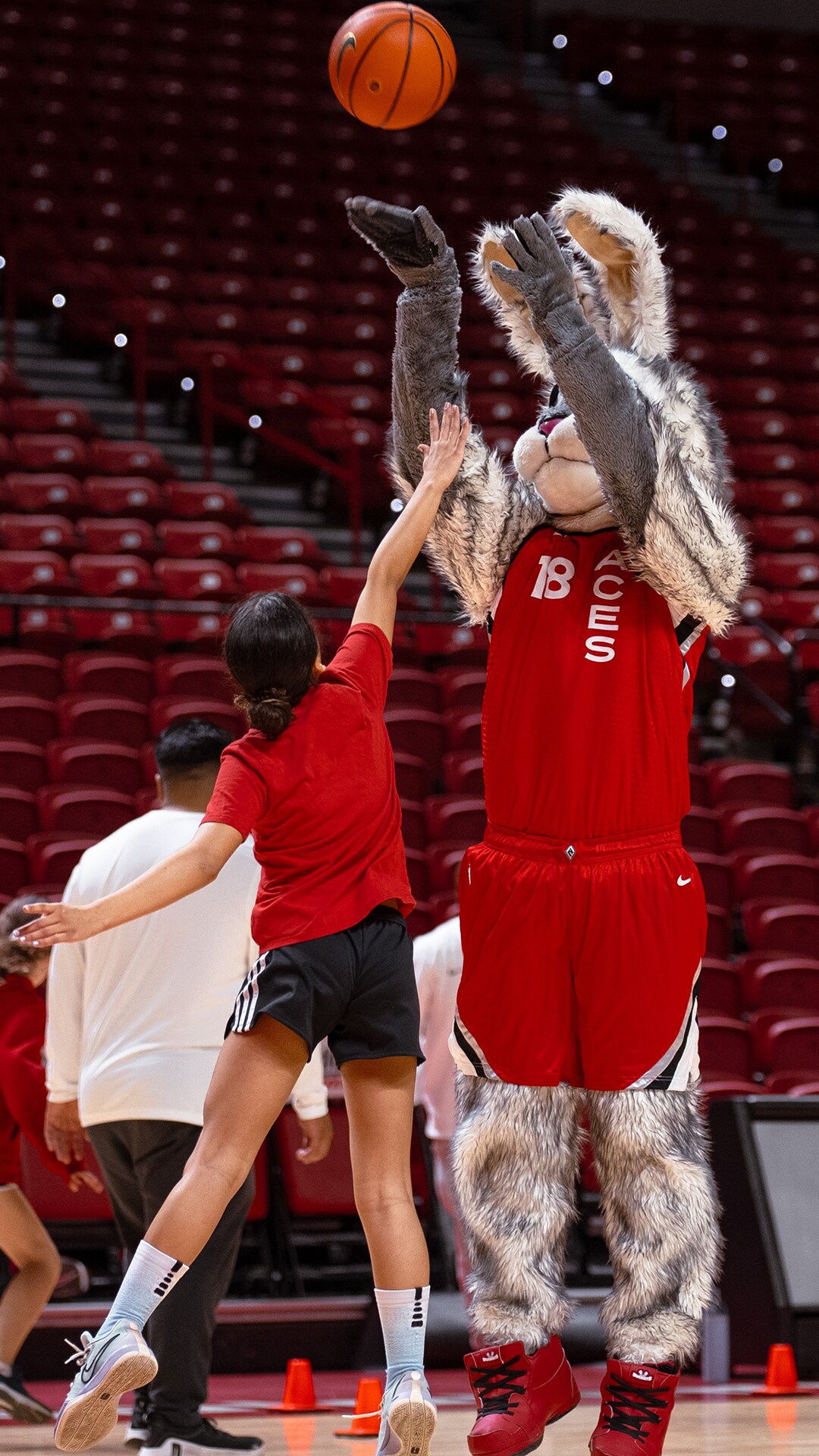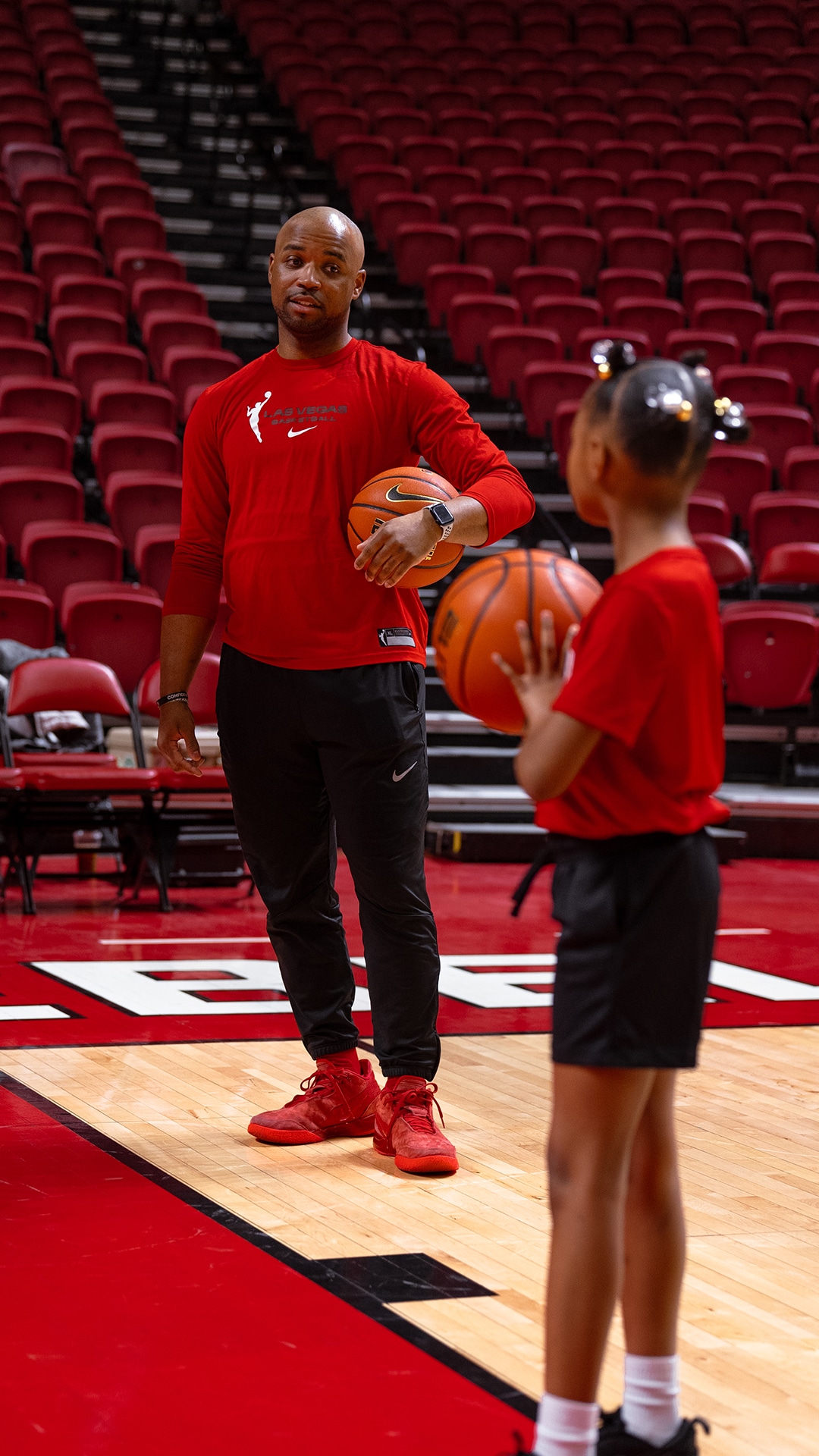 The Las Vegas Aces joined the UNLV Athletic Department for a free all-sports clinic at the Thomas & Mack Center, followed by attending the Lady Rebels game against University of Nevada, Reno in honor of National Girls and Women in Sports Day. Aces assistant coach Larry Lewis, along with members of the team's practice squad, helped lead the clinic. The event encouraged kids to stay active and confident through sports and motivational programming!