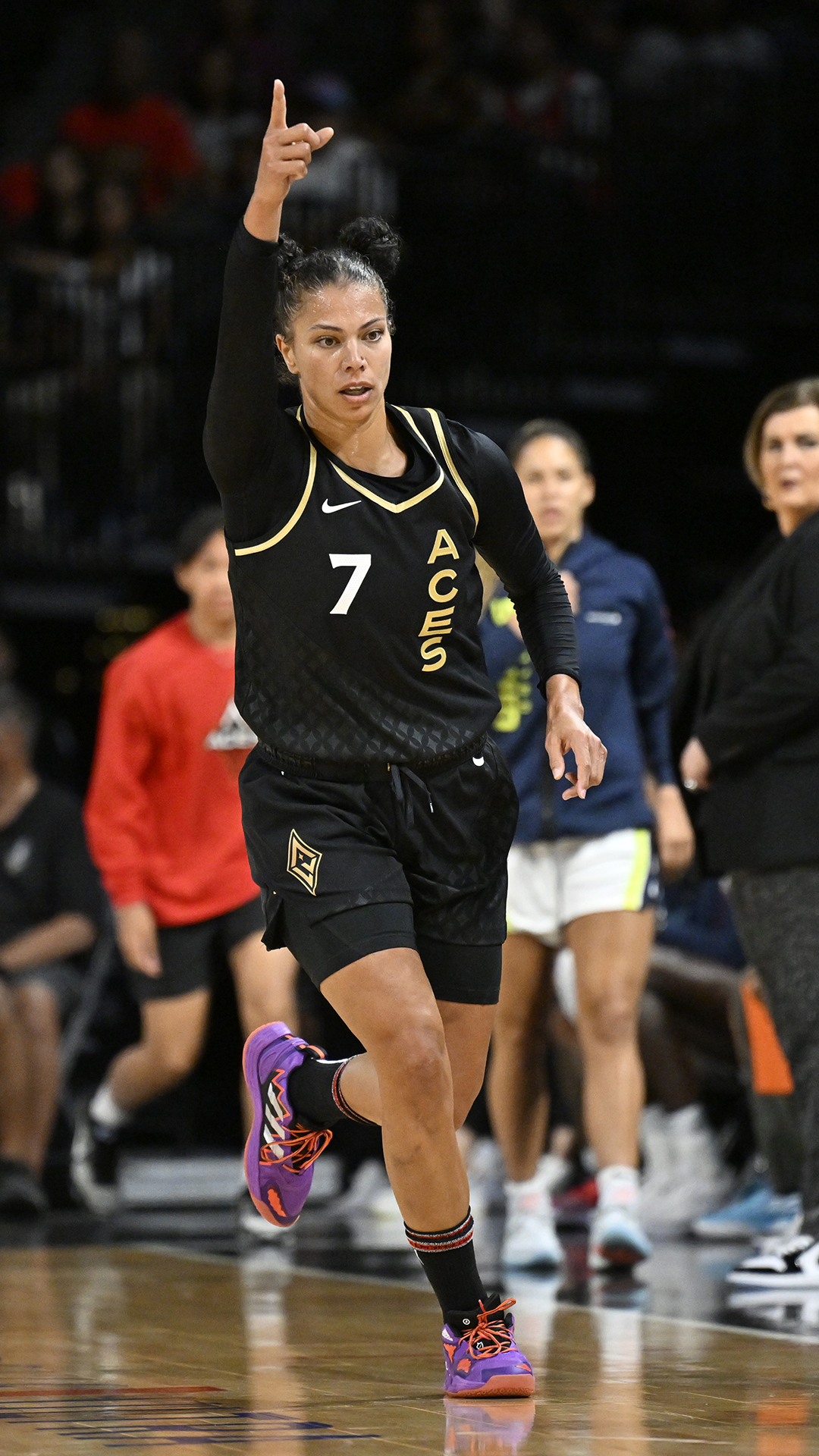 Alysha Clark joined the Aces in 2023, and averaged 6.7 points and 3.4 rebounds per game, while shooting 44.4% from the field, 38.6% from beyond the arc (which ranked 23rd in the league), 81.8% from the line and finished with an effective field goal percentage of 56.8%. Clark was rewarded for play off the bench as the 2023 WNBA Sixth Player of the Year. In postseason play, Clark upped her production to 8.2 points and 3.8 rebounds in helping the Aces capture the WNBA Championship. In all, over her two years in Las Vegas, Clark averaged 6.3 points, 3.5 rebounds and 1.4 assist per game in the regular season and 7.3 points, 4.2 rebounds and 1.6 points in postseason play.
