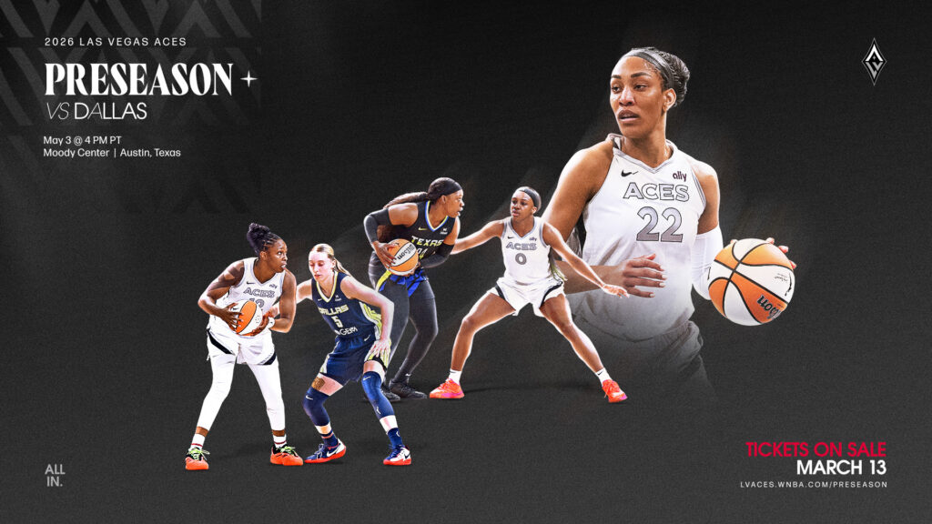 The Las Vegas Aces will compete in a preseason contest against the Dallas Wings on May 3 in Austin, Texas. Played at the Moody Center, home of the University of Texas at Austin basketball teams, the game will tipoff at 4 p.m. PT and broadcast information will be announced at a later date.